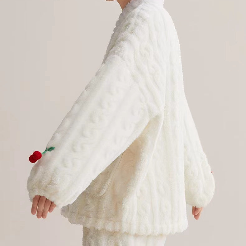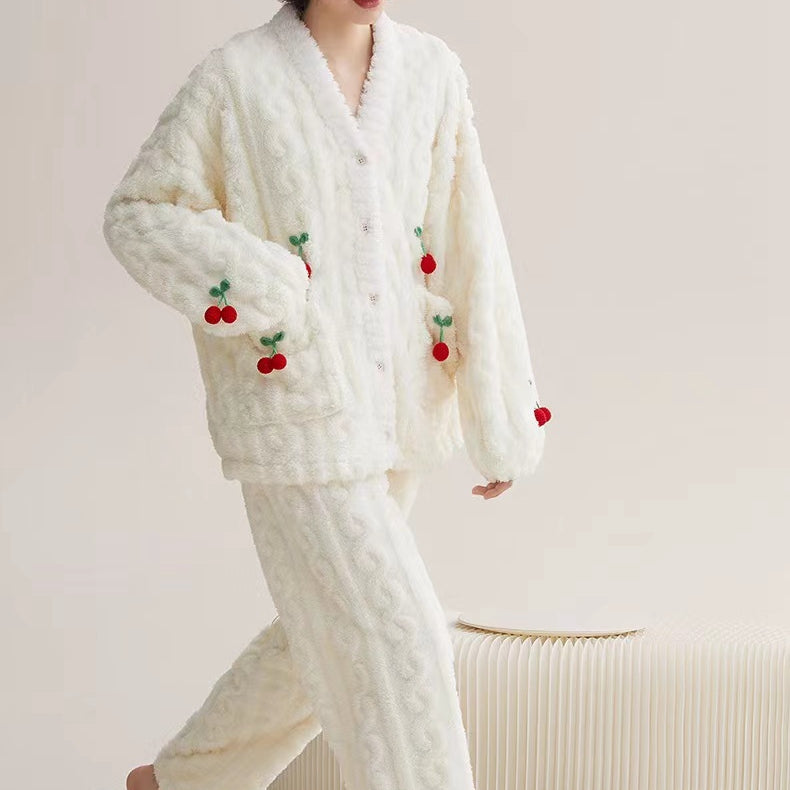 Jacquad Plain Dyed Sherpa Fleeece Pajama Set
